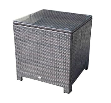 Outsunny Rattan Garden Furniture Side Table Patio Frame Tempered