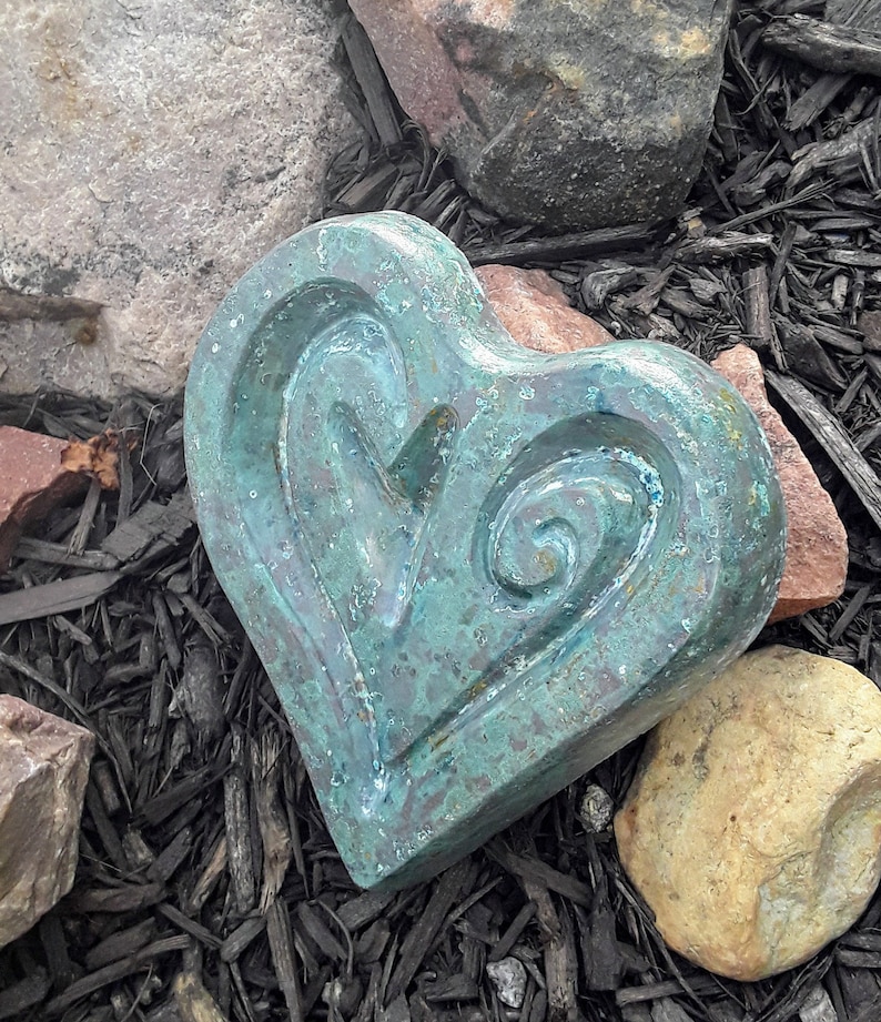 Heart Stepping Stone Cement Garden Statue Shabby Chic Etsy