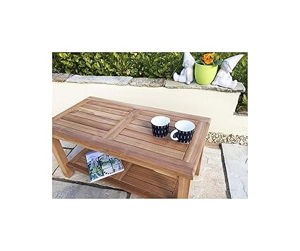 Rectangular 90cm Teak Garden Coffee Table With Shelf Patio