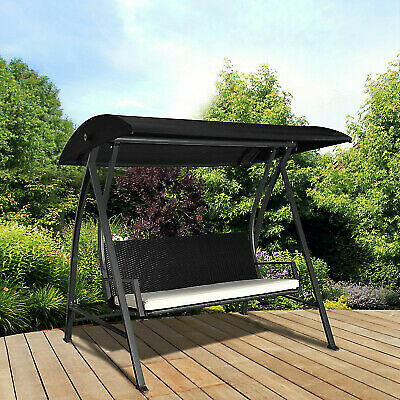 Outsunny 10770 Outdoor Garden Rattan Swing Chair Black For Sale