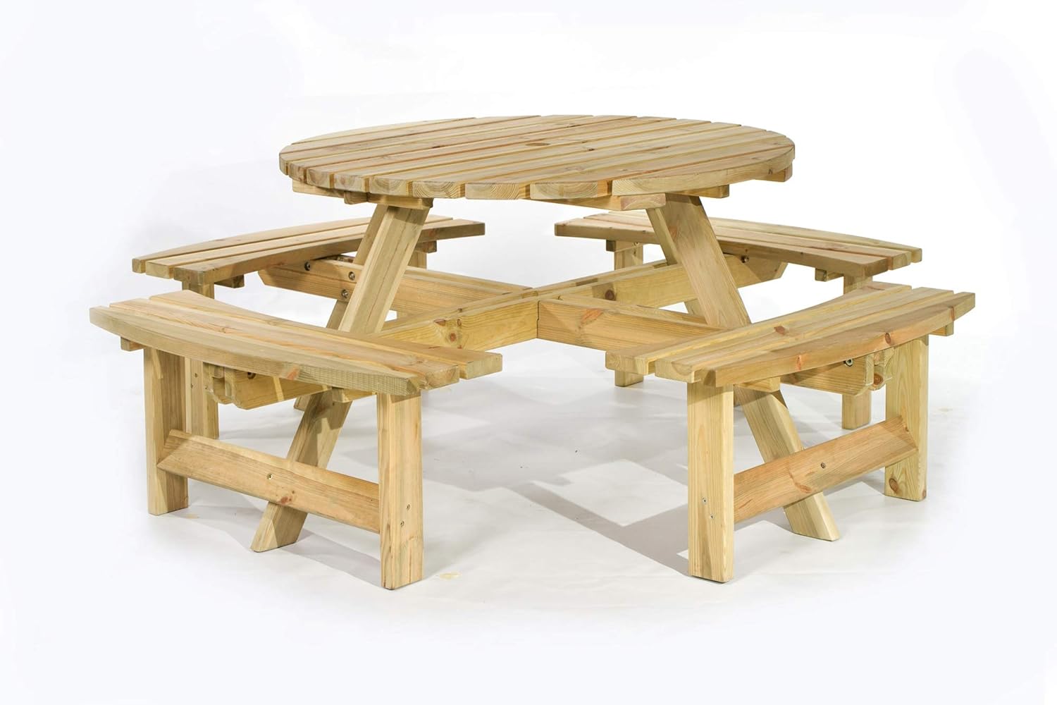 Brackenstyle Picnic Pub Bench 8 Seater Round Wooden Garden Patio