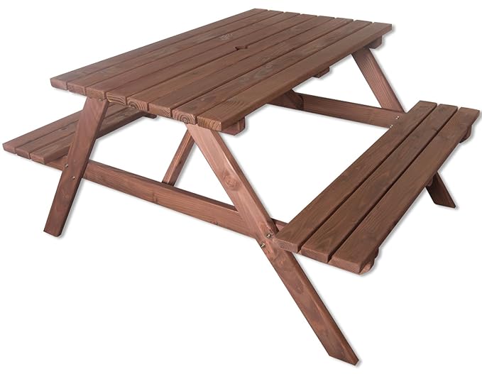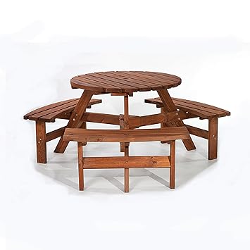 Brackenstyle Brown Picnic Pub Bench 6 Seater Round Wooden Garden