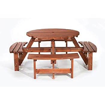 Brown Picnic Pub Bench 8 Seater Round Wooden Garden Table Delivery