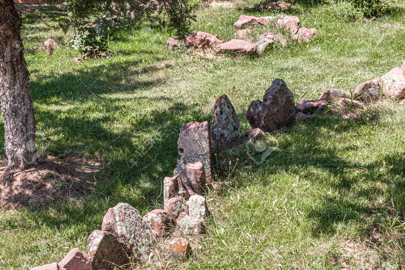 Stones Among Green Grass Garden Of Stones Stock Photo Picture