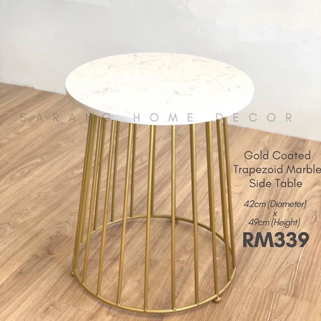 Ready Stock Gold Coated Round Marble Table Trapezoid Side Table