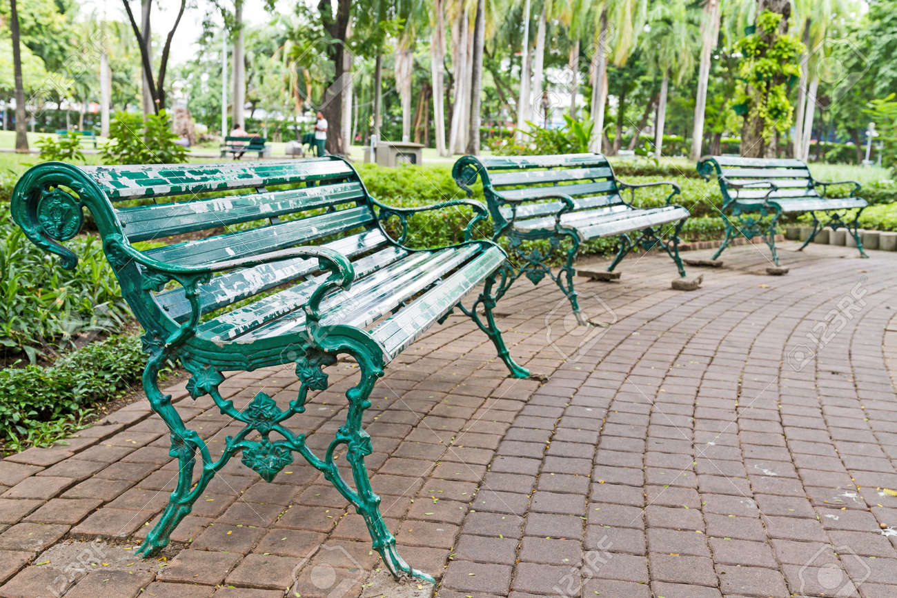 Metal Garden Chair In The Public Park Stock Photo Picture And