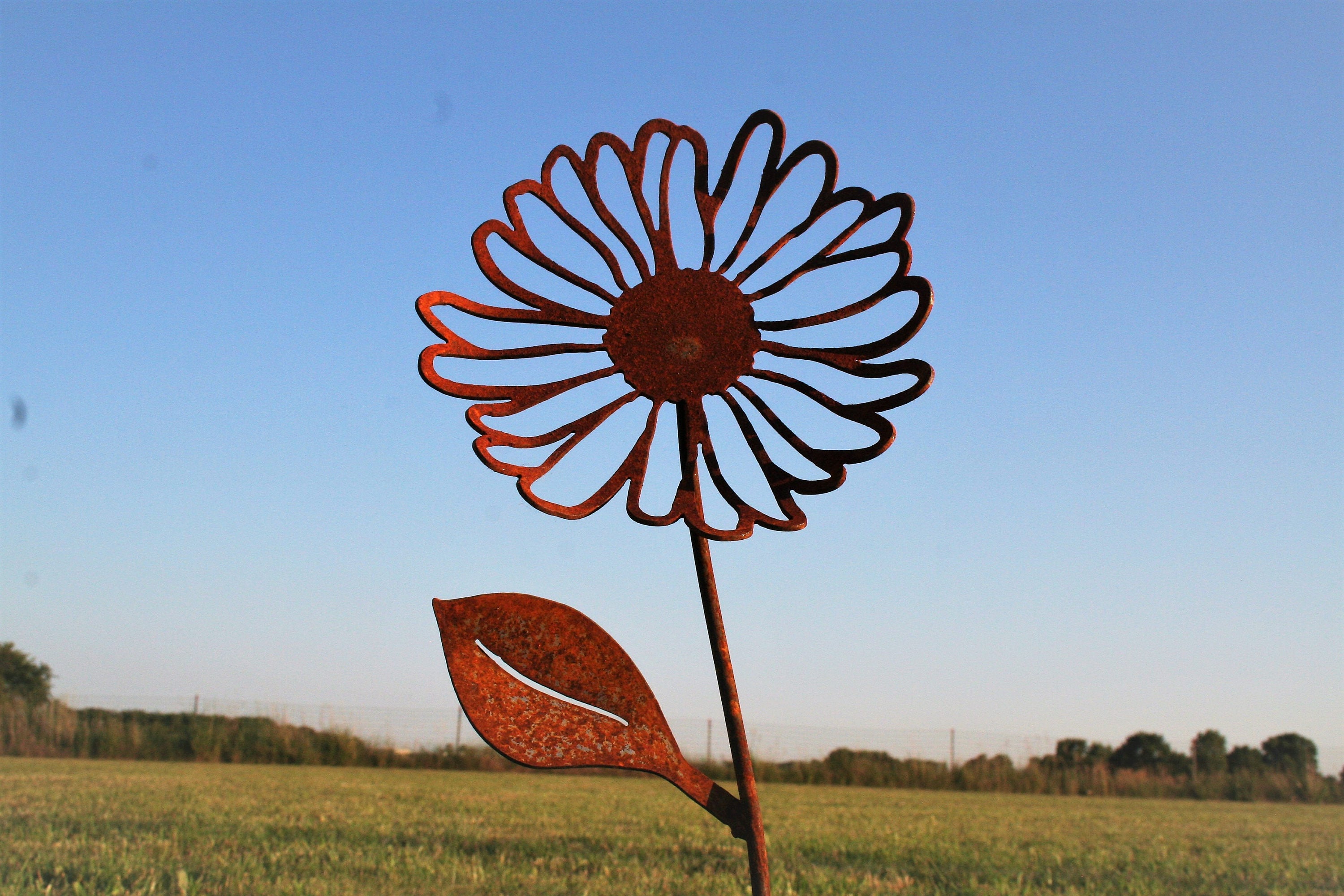 Rusty Metal Daisy Metal Flower Stake Rustic Flower Set Of