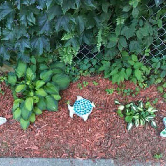 Fish Shaped Garden Stone With Glass Pebbles Concrete Garden Etsy